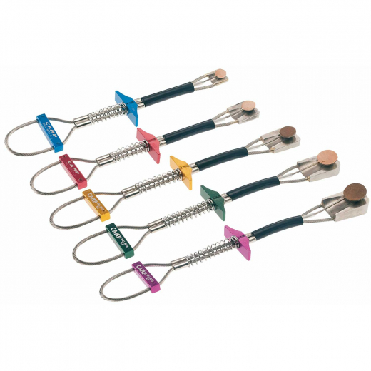 Ce point d’ancrage temporaire Camp est disponible en 5 tailles différenciées par des couleurs distinctes pour mieux se repérer sur le harnais lors de vos sessions d'escalade technique.