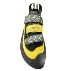 La version velcro reprend les caractéristiques exceptionnelles de la version lacets avec des éléments innovants tels que ses 3 velcros qui permettent de passer le chausson au pied rapidement. La tige du Miura est de construction tubulaire pour ne pas s'écraser trop en mode babouche. Le Miura VS accueille le P3, système breveté qui permet de maintenir dans le temps la forme initiale de l'arche de la voute plantaire. Le choix de la gomme XS Edge est pertinent pour un usage falaise, dévers, il vous apportera une précision et une adhérence optimale sur les petits grattons. Son talon est assez puissant pour envoyer l'énergie vers l'avant du pied et faire des crochetages. L'absence de gomme à l'avant limite les crochetages de pointe, mais apporte du confort en grande voie en laissant de la souplesse à vos phalanges recroquevillées.