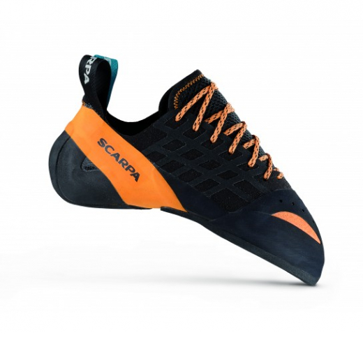 La gamme de chaussons Instinct de chez Scarpa se caractérise par une asymétrie et une cambrure légère associées à une pointe griffée qui apporte technicité et précision, avec un talon puissant.